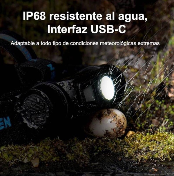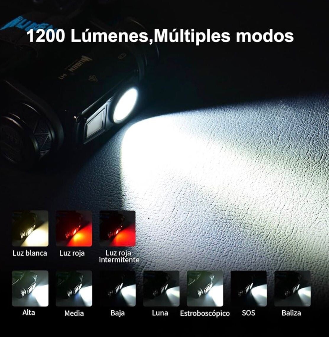 Linterna de 1200 Lumens, con certificacion 1p68, sumergible 2 metros bajo el agua, bateria de larga duracion de 2600 mA, perfecta para deportes de naturaleza